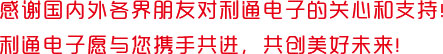 我相信,通過利通新網(wǎng)站這一平臺(tái),能夠進(jìn)一步加深廣大新老客戶對(duì)利通的了解和信任,能夠進(jìn)一步增進(jìn)新老合作伙伴友好關(guān)系的發(fā)展,能夠促進(jìn)利通電子實(shí)現(xiàn)“創(chuàng)新創(chuàng)優(yōu)服務(wù)社會(huì),增收增效回報(bào)股東”的企業(yè)愿景!